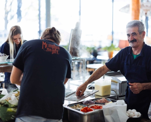 Ob als Highlight bei deinem Event, als köstliche Ergänzung zu unserem Buffet oder einfach für den besonderen Genuss zwischendurch – unser Shawarma vom Live-Grill ist immer eine gute Wahl. Dazu reichen wir frische Beilagen, hausgemachte Saucen und orientalisches Fladenbrot, damit jeder Bissen ein Erlebnis wird.
