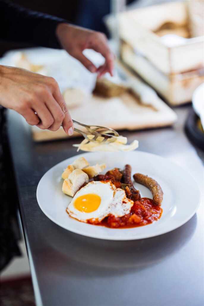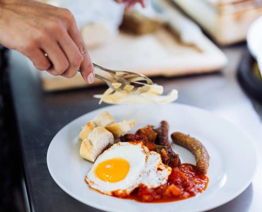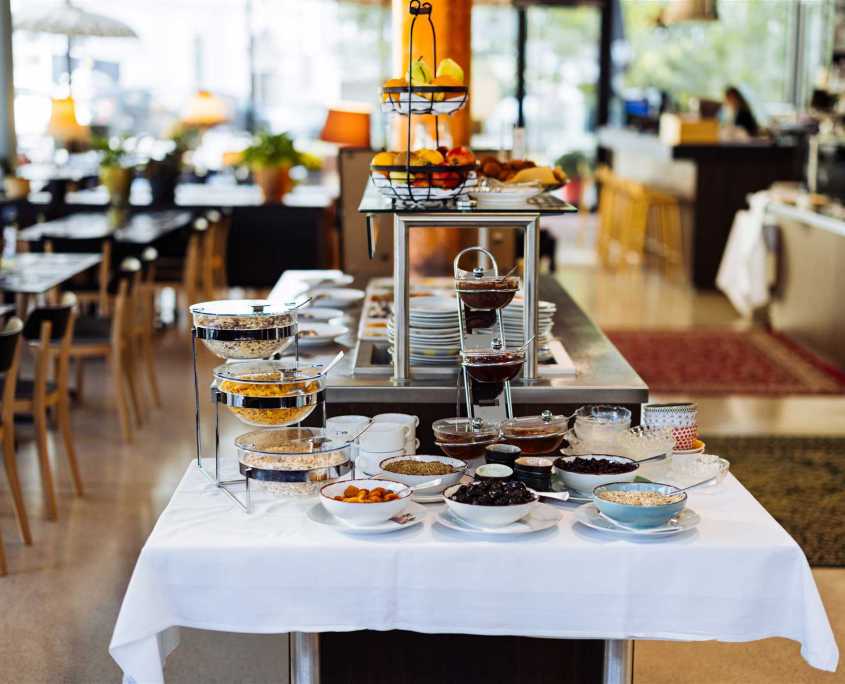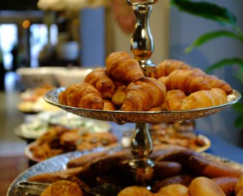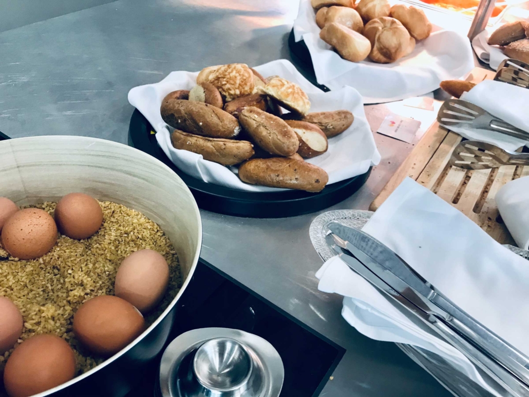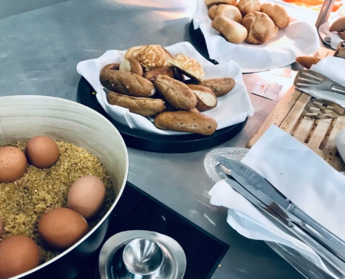 Flauschige Pancakes! Saftiges Shakshuka! Eier, Brot und Hummus, Aufstriche, frisches Obst & Gemüse in vielen Variationen! Knuspriges Granola, Cerealien, Joghurt, frische Käse- & Wurstplatte auf Etageren an deinen Tisch, Lachs und noch viel mehr kalte wie warme saisonal angepasste Köstlichkeiten, mit einem Wort alles was das Herz begehrt. Willkommen am Buffet voller frischer wie bunter Vielfalt! An unserer Eierstation hast du die Wahl zwischen Omelette, Eierspeis, Spiegelei oder auch flaumigen Pancakes.